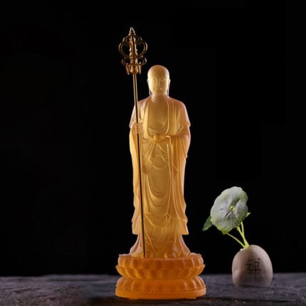 Handmade Sakyamuni Buddha Liuli Crystal Art Piece Compassion Statue Home Office Offering Decoration