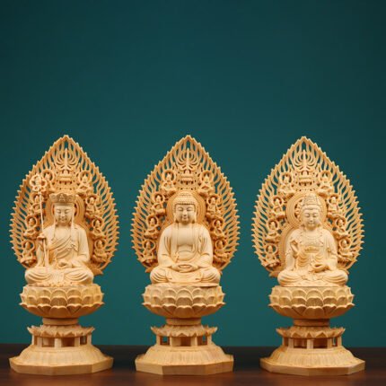 Handmade Sakyamuni Kwan Yin Avalokitesvara Ksitigarbha Bodhisattva Statue Boxwood Grounding Home Decoration