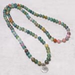 108 Mala Beads Indian Agate Lotus OM Buddha Tree of Life Positive Calm Bracelet – Your Wrist-Worn Universe of Sacred Harmony
