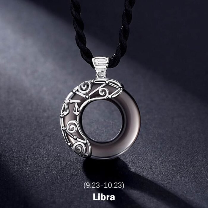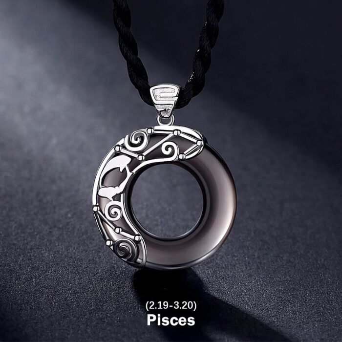 12 Constellations of the Zodiac Ice Obsidian Blessing Round Pendant Necklace