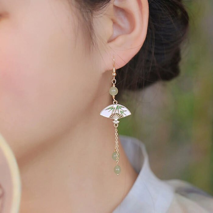 14K Gold Filled Copper Jade Fan Bamboo Abundance Earrings