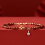14K Gold Plated Copper Red Agate Copper Coin Confidence Bracelet