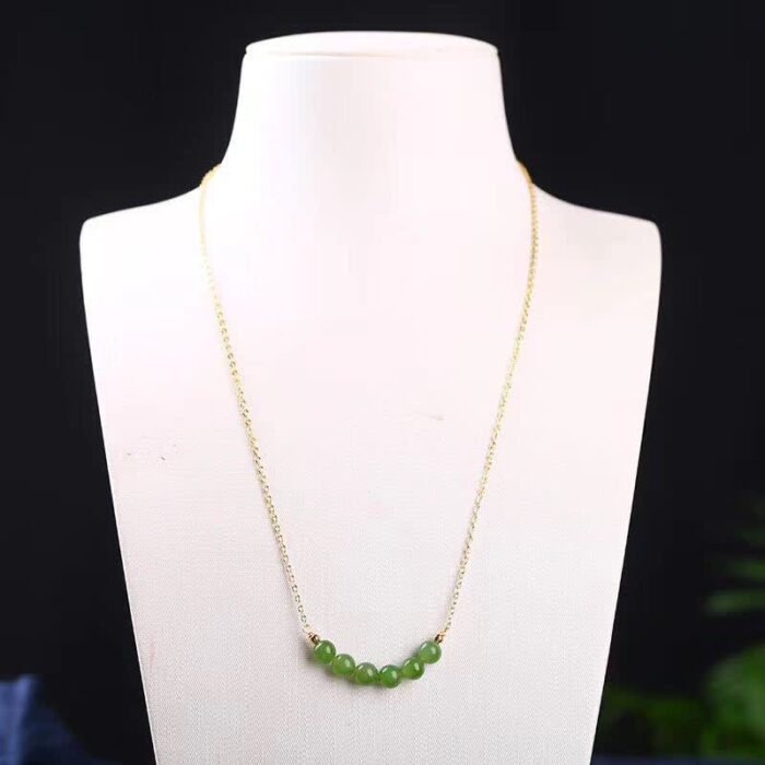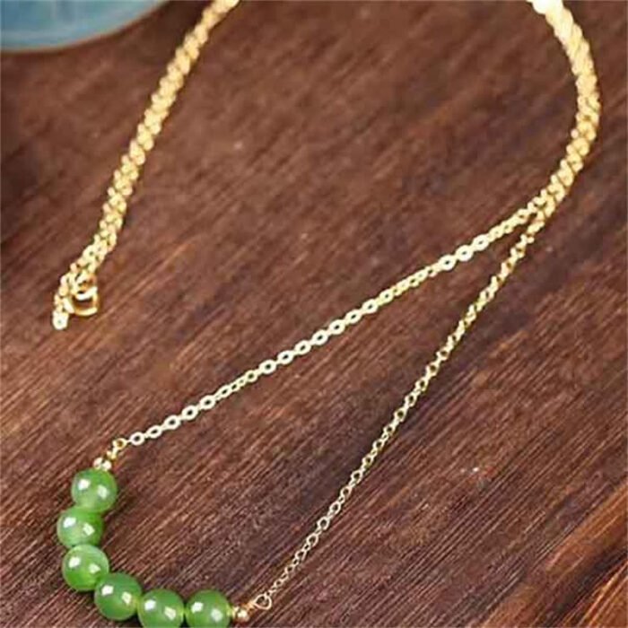 14k Gold Plated Hetian Cyan Jade Beaded Luck Necklace Pendant
