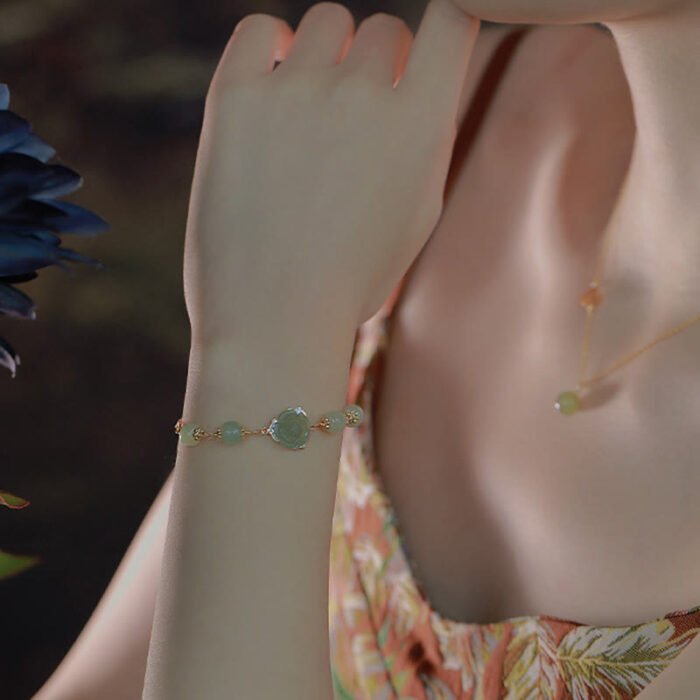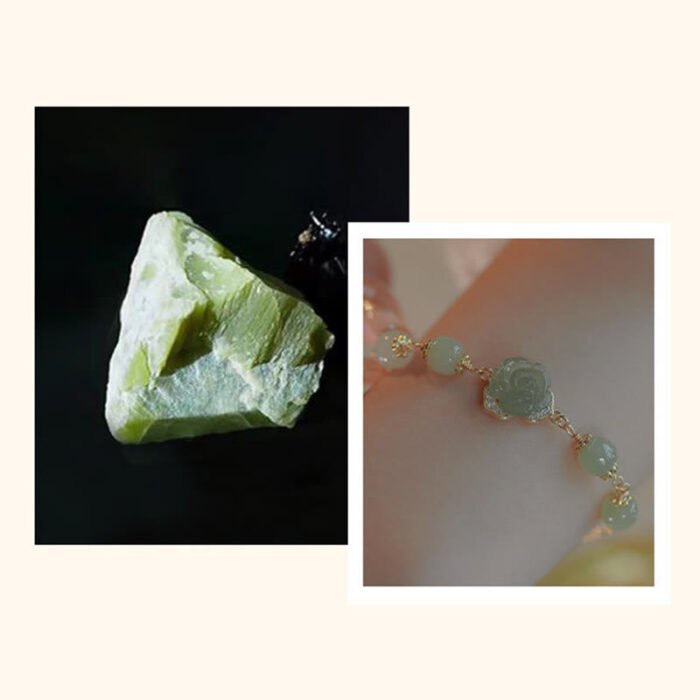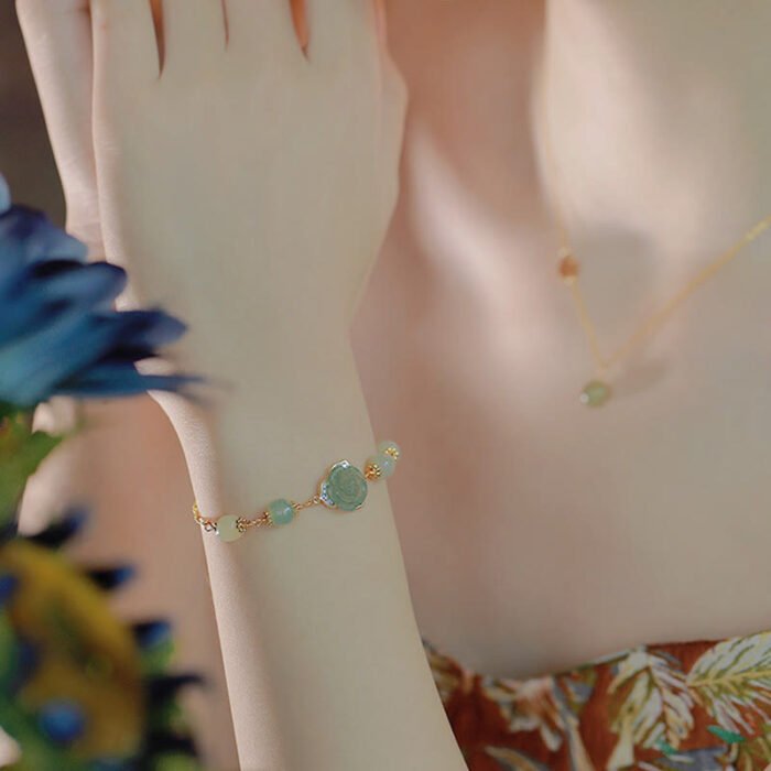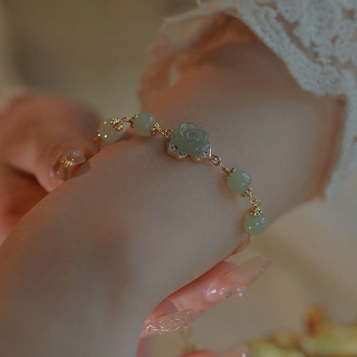 14K Gold Plated Hetian Jade Rose Flower Luck Chain Bracelet