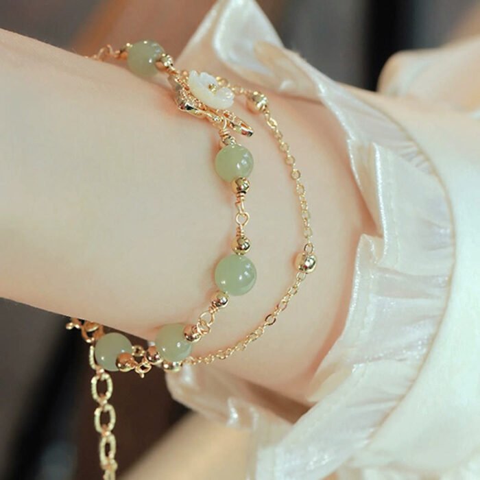 14K Gold Plated Jade Butterfly Tridacna Stone Flower Double Layer Luck Bracelet