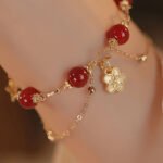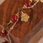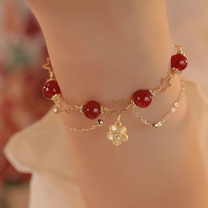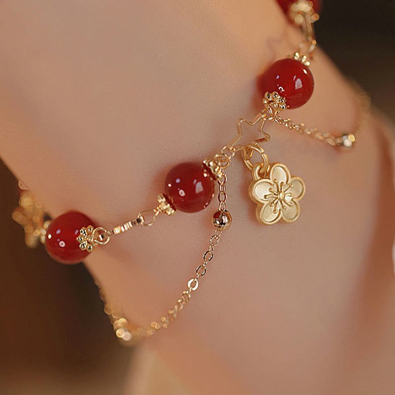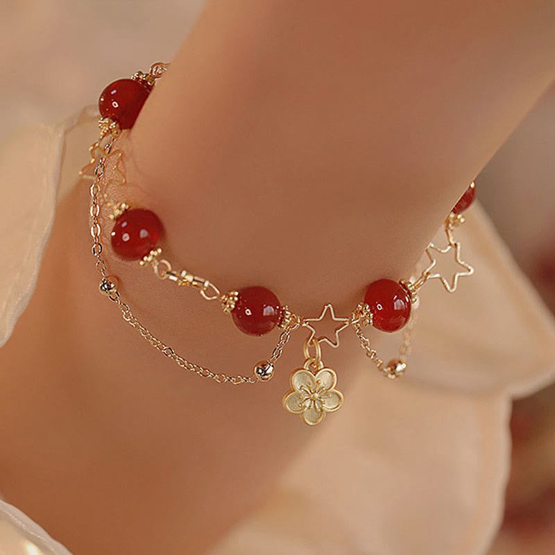 14K Gold-Plated Red Agate Star Flower Bracelet