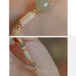 14K Gold Plated Tridacna Stone Hetian Jade Bead Bamboo Pattern Bracelet