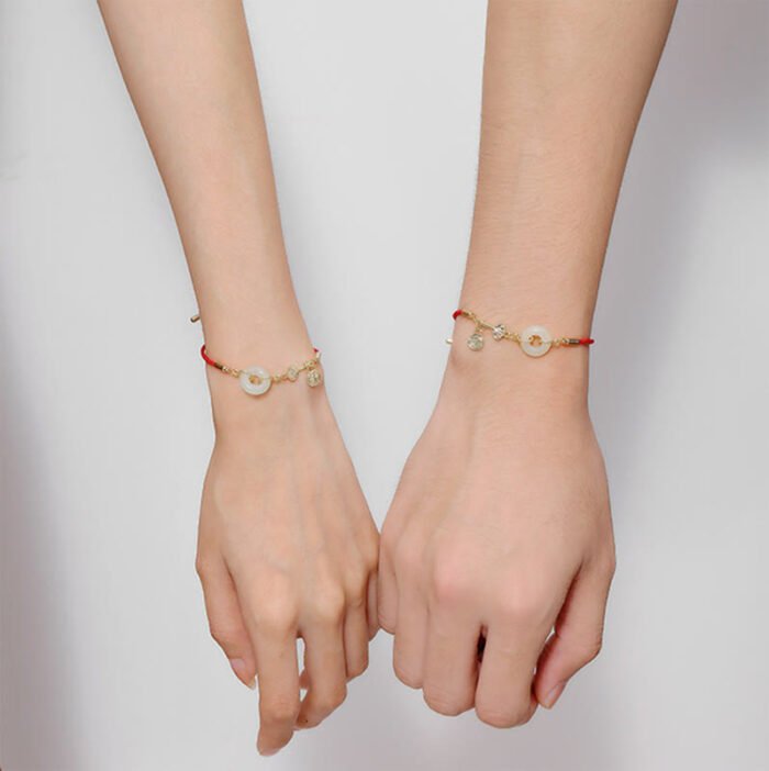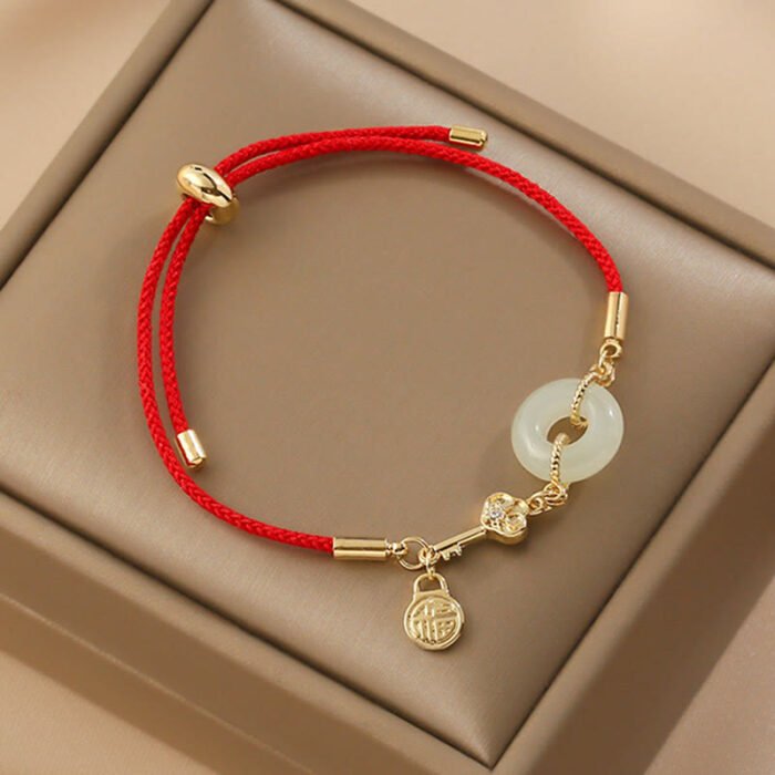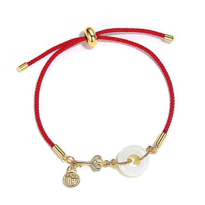 18K Gold Plated Hetian Jade Peace Buckle Fu Character Luck Red Rope Bracelet