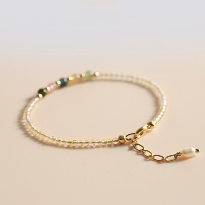 2.5mm Ultra-thin Citrine Tourmaline 14K Gold Filled Copper Beads Prosperity Bracelet