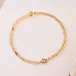 2mm Ultra-thin Citrine 14K Gold Plated Copper Beads Protection Bracelet