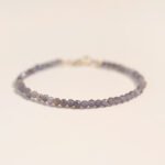 3mm Amethyst & Iolite Ultra-Thin Beads 14K Gold-Plated Communication Bracelet