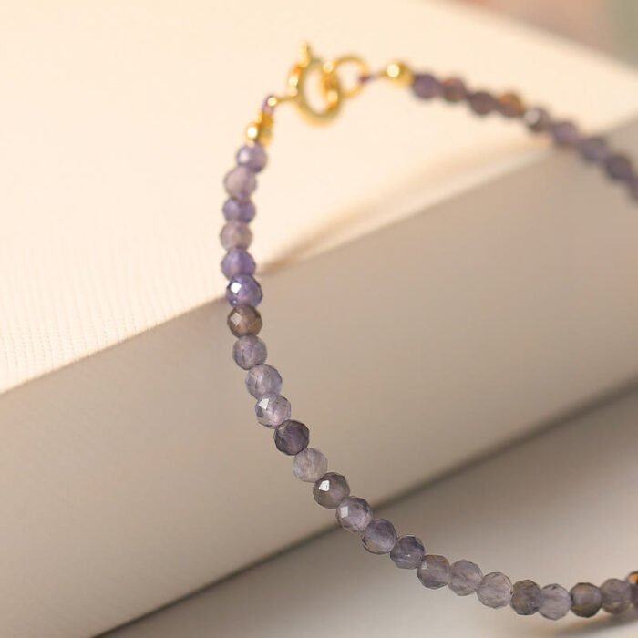 3mm Amethyst Iolite Ultra-thin Beads 14k Gold Plated Copper Communication Bracelet