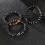 3Pcs Frosted Stone Lava Rock Tiger Eye Activate Bracelet