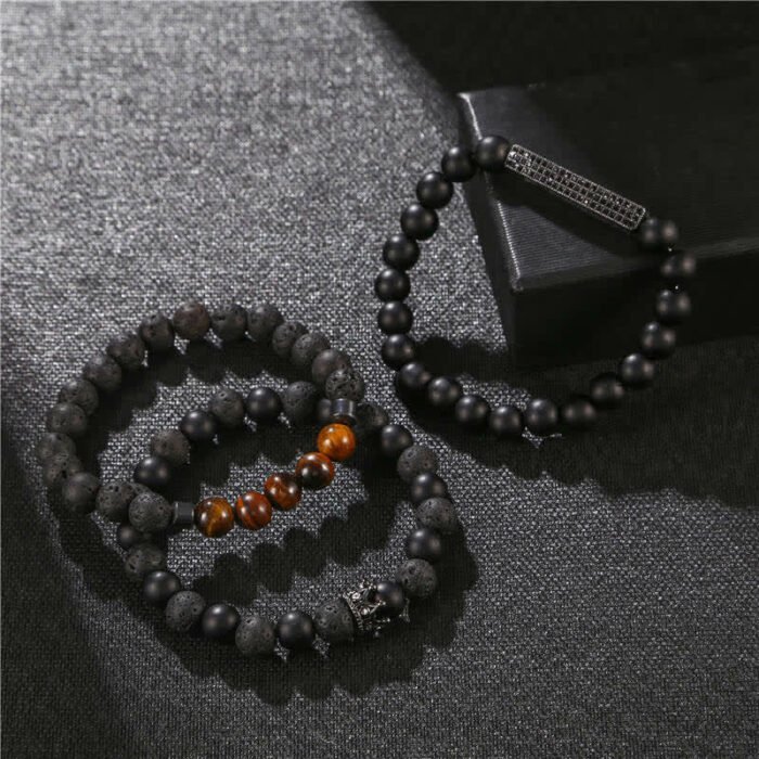 3Pcs Frosted Stone Lava Rock Tiger Eye Activate Bracelet