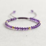 4mm Handmade Natural Amethyst 14k Gold Plated Copper Beads Braided String Relieves Stress Bracelet