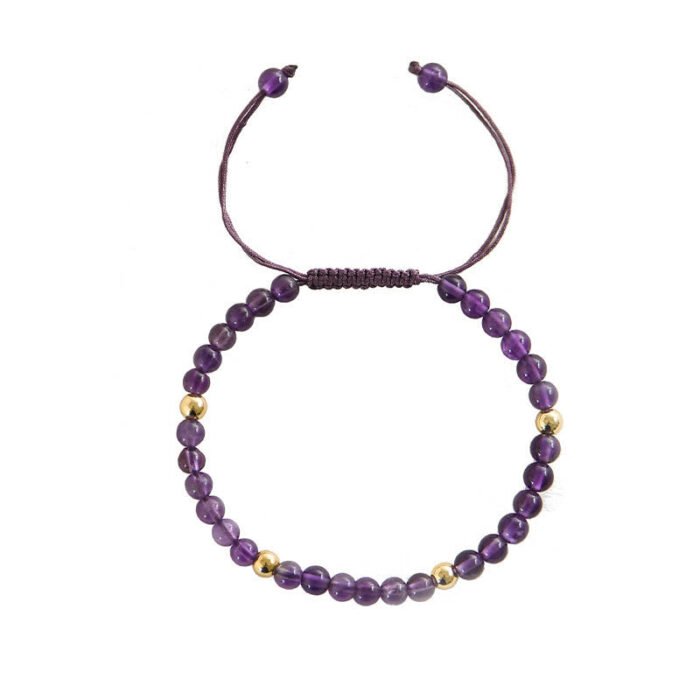 4mm Handmade Natural Amethyst 14k Gold Plated Copper Beads Braided String Relieves Stress Bracelet