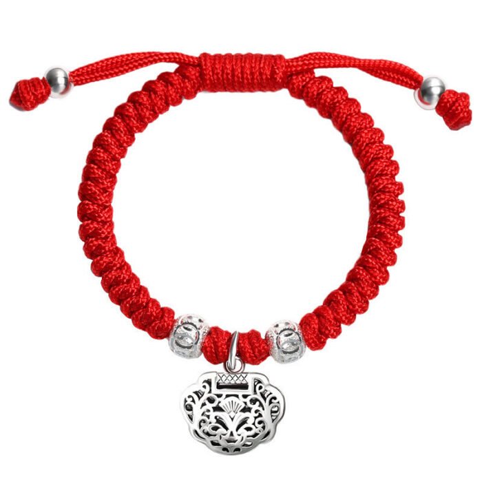925 Sterling Silver Chinese Lock Charm Multicolored Red String Protection Handmade Braided Kids Bracelet