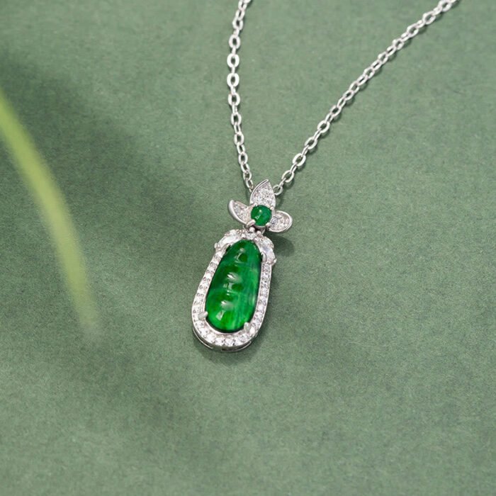 925 Sterling Silver Cyan Jade Pea Design Luck Healing Necklace Pendant
