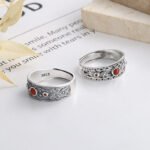 925 Sterling Silver Embedded Red Agate Auspicious Clouds Logical Thinking Ring