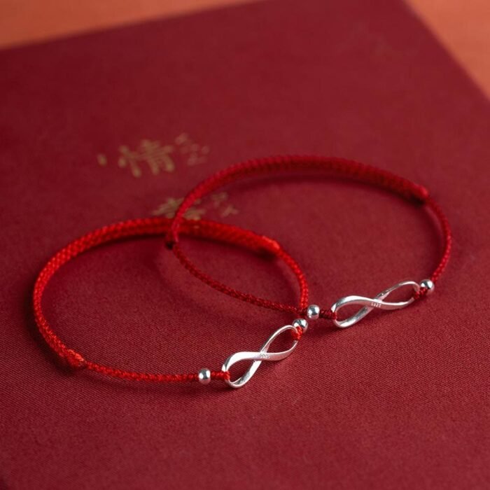 925 Sterling Silver Endless Knot Protection Luck Red String Bracelet Anklet