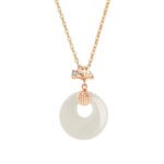 925 Sterling Silver Ginkgo Leaf Butterfly Rose Chalcedony Hetian Jade Peace Buckle Fu Character Harmony Necklace Pendant