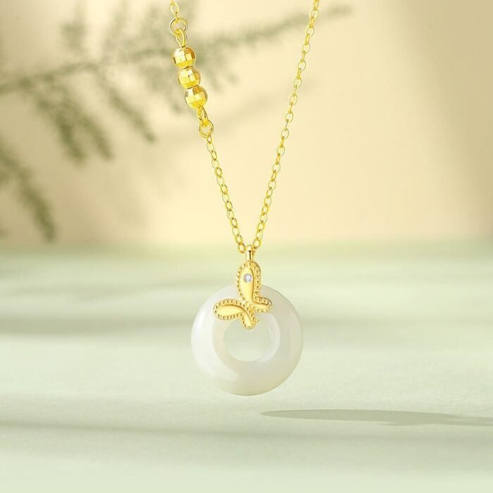 925 Sterling Silver Ginkgo Leaf Butterfly Rose Chalcedony Hetian Jade Peace Buckle Fu Character Harmony Necklace Pendant