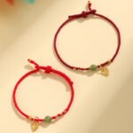 925 Sterling Silver Hetian Jade Bead Copper Coin Love Heart Charm Luck Bracelet