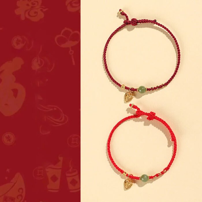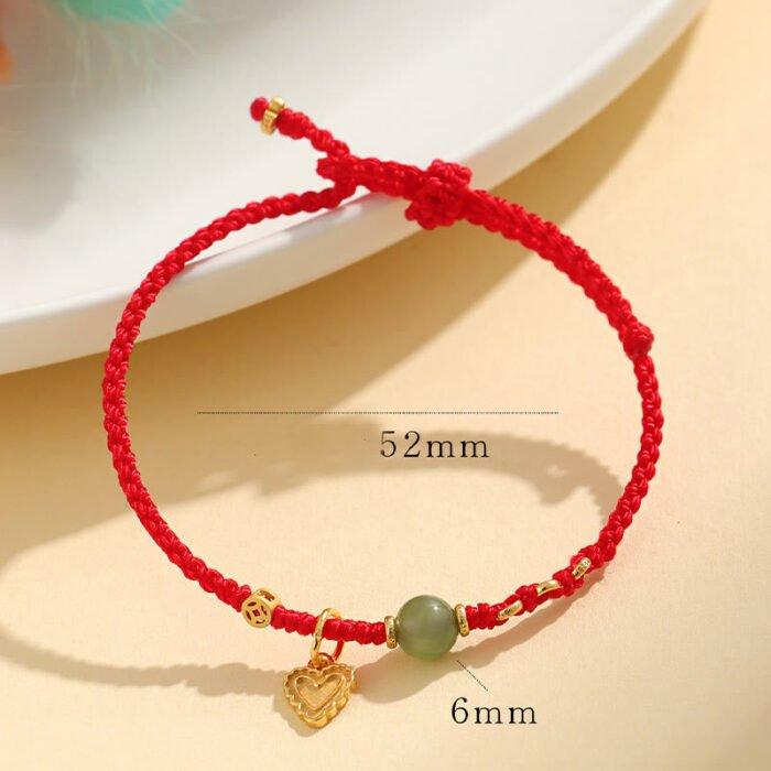 925 Sterling Silver Hetian Jade Bead Copper Coin Love Heart Charm Luck Bracelet