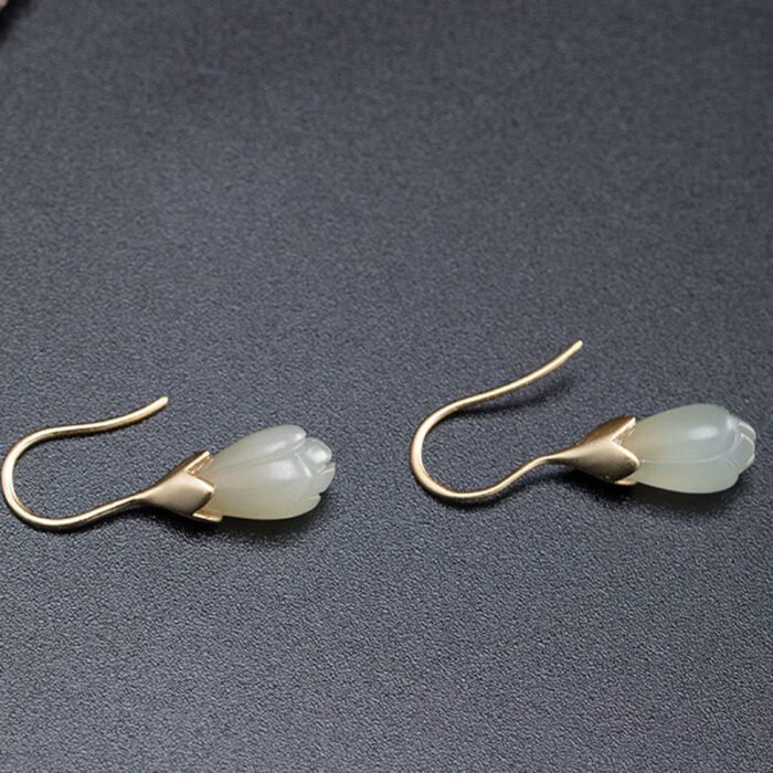 925 Sterling Silver Hetian Jade Magnolia Abundance Drop Earrings
