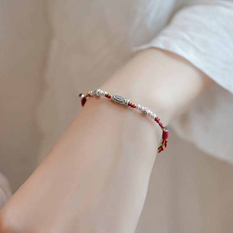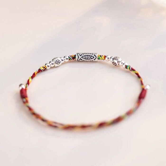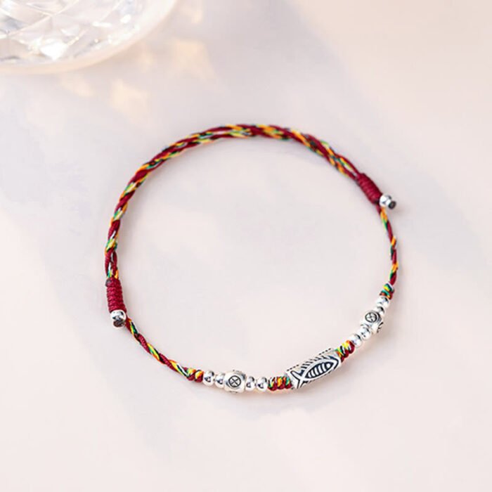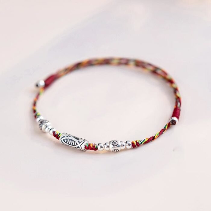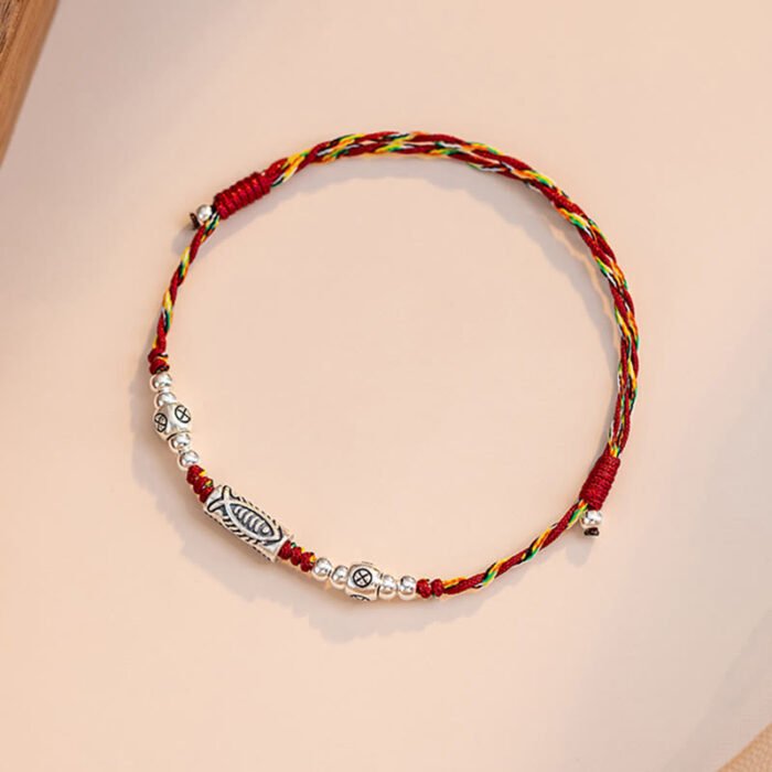925 Sterling Silver Luck Koi Fish Braided Colorful String Bracelet Anklet