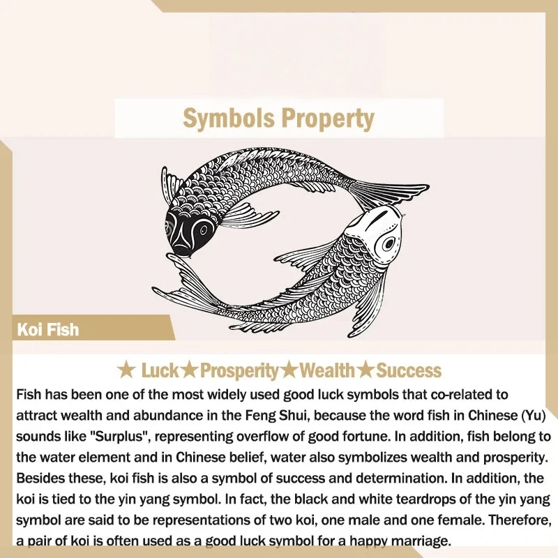 - Wealth Current: “Yu” (fish) = “surplus” in Chinese (double the fortune)
