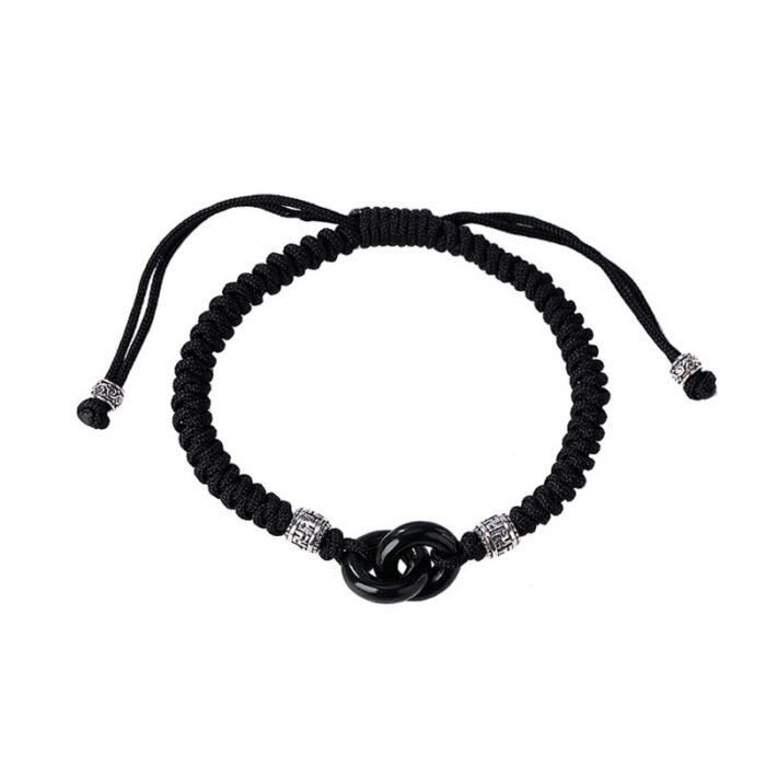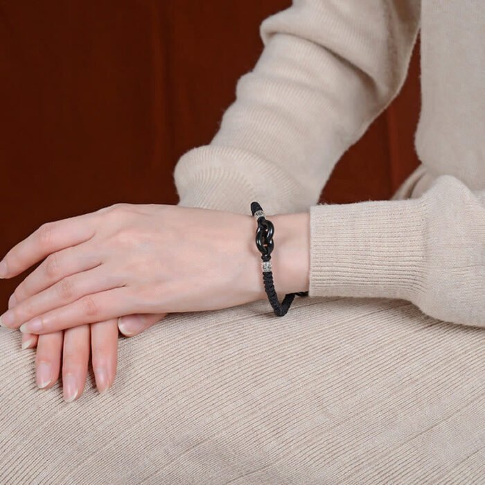 Hand-knotted by Tibetan monks, this 925 silver and Grade-A Hetian black jade bracelet channels triple sacred energy: