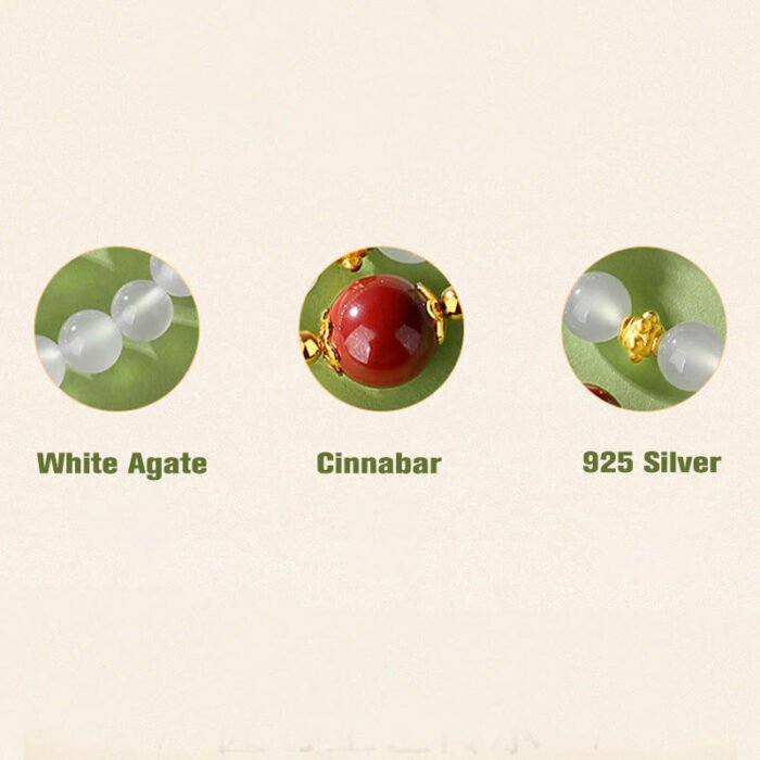 Meticulously hand-knotted with 6mm white agate and 8mm sacred cinnabar, this double-wrap bracelet channels divine protection through 925 sterling silver spacers—a portable mandala for mindful living.