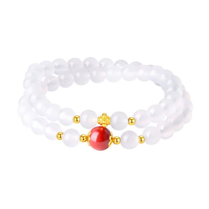 925 Sterling Silver Natural White Agate Cinnabar Double Wrap Protection Bracelet