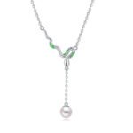 This 40+5cm sterling silver necklace features a 20×18mm snake pendant embracing a 6-8.5mm luminous pearl—a powerful talisman blending Chinese zodiac wisdom with oceanic serenity.