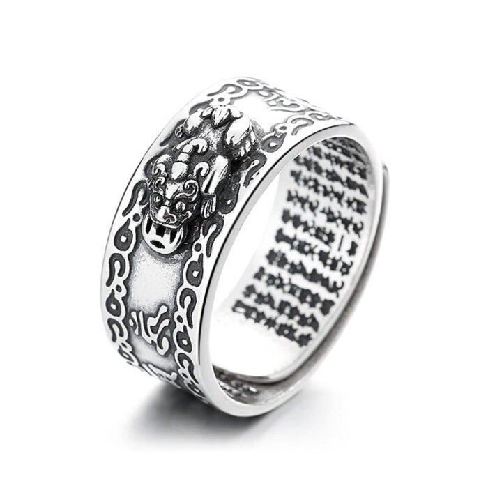 925 Sterling Silver PiXiu Scripture Carved Wealth Adjustable Ring