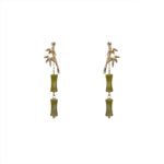 925 Sterling Silver Posts Copper Plated Gold Natural Peridot Bamboo Leaf Drop Earrings