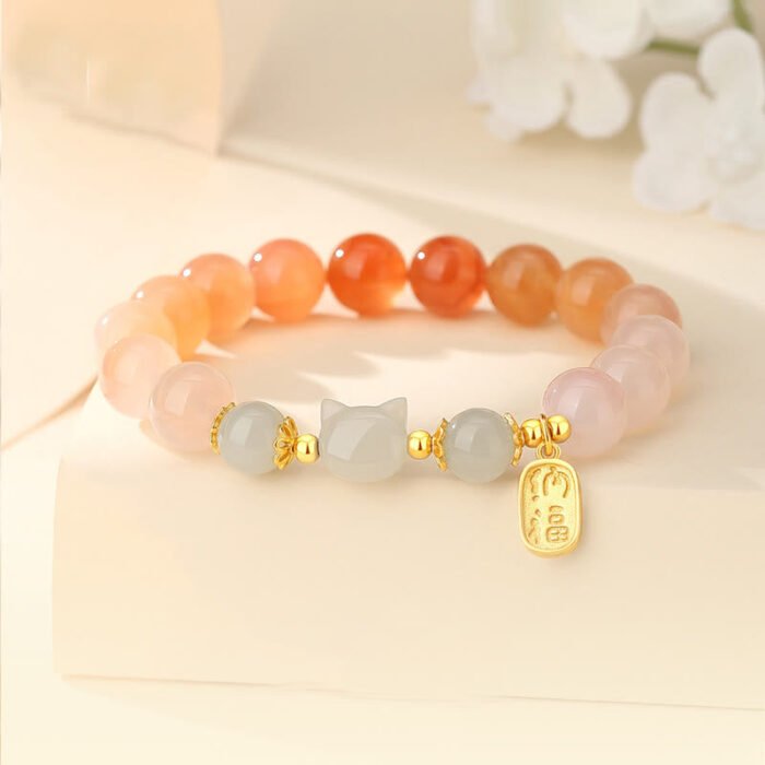 925 Sterling Silver Red Agate Hetian Jade Cat Fu Character Confidence Bracelet