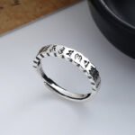 This 4mm adjustable ring transforms the ancient Om Mani Padme Hum mantra into a wearable vibrational tool, combining: