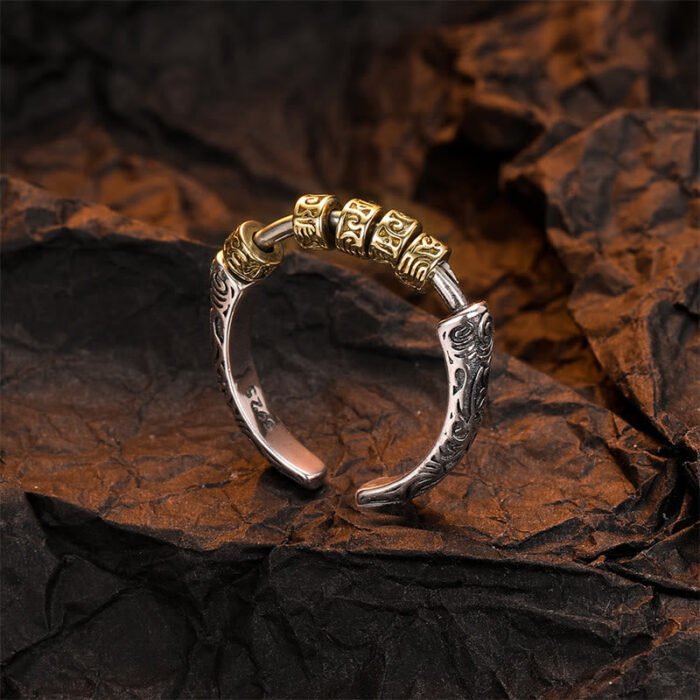 925 Sterling Silver Tang Dynasty Flower Design Luck Energy Ring