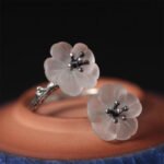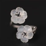 925 Sterling Silver White Crystal Double Plum Blossom Flower Adjustable Protection Ring