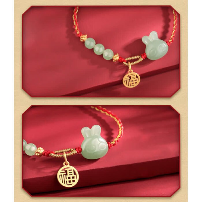 925 Sterling Silver Year of the Rabbit Hetian Jade Happiness Luck Red String Bracelet