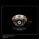 925 Sterling Silver Zakiram Goddess of Wealth Design Dzi Bead Protection Ring