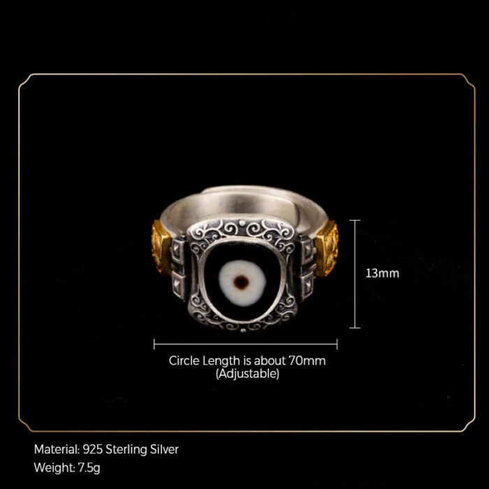 925 Sterling Silver Zakiram Goddess of Wealth Design Dzi Bead Protection Ring