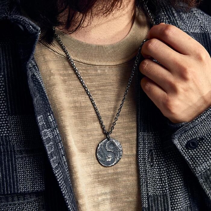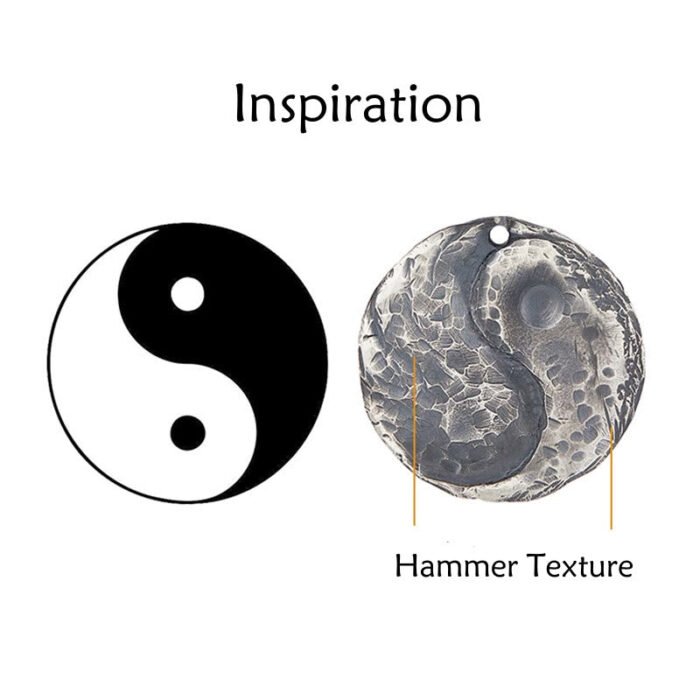 990 Sterling Silver Yin Yang Hammer Texture Harmony Necklace Pendant