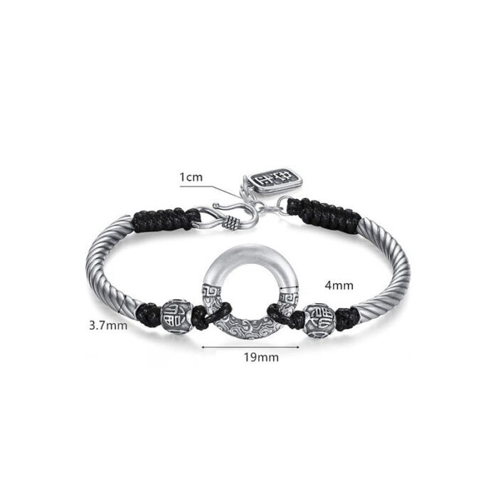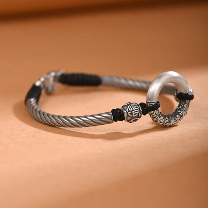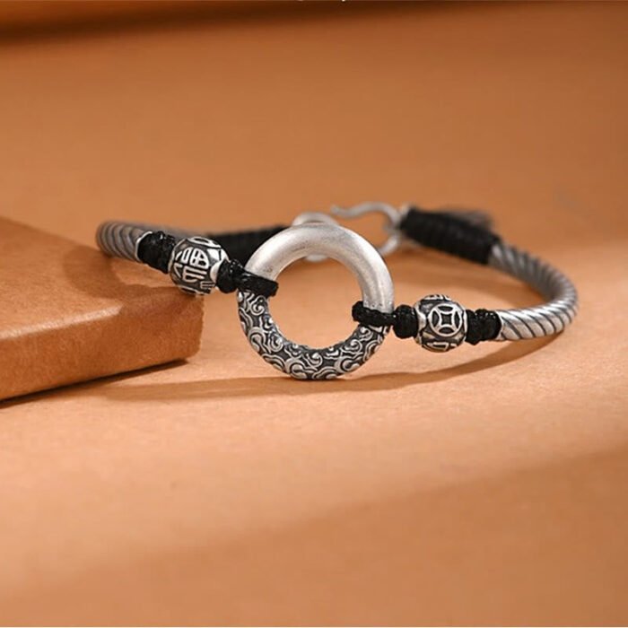 999 Sterling Silver Fu Character Peace Buckle Copper Coin Auspicious Clouds Fortune Bracelet