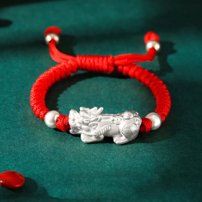 999 Sterling Silver PiXiu Wealth King Kong Knot String Braided Kids Child Bracelet
