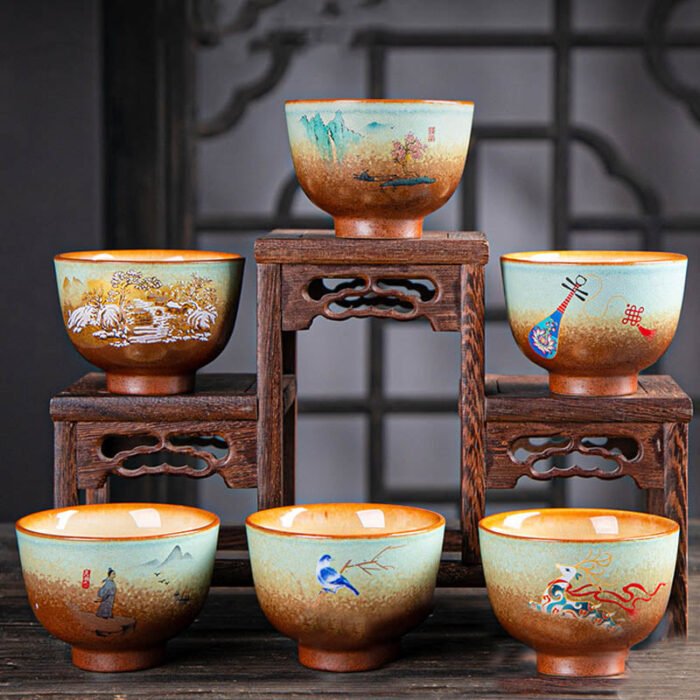Colorful Deer Pipa Snow Plum Blossoms Mountains Rivers Bird Ceramic Teacup Kung Fu Tea Cup Bowl – Your Poetic Sanctuary in Porcelain