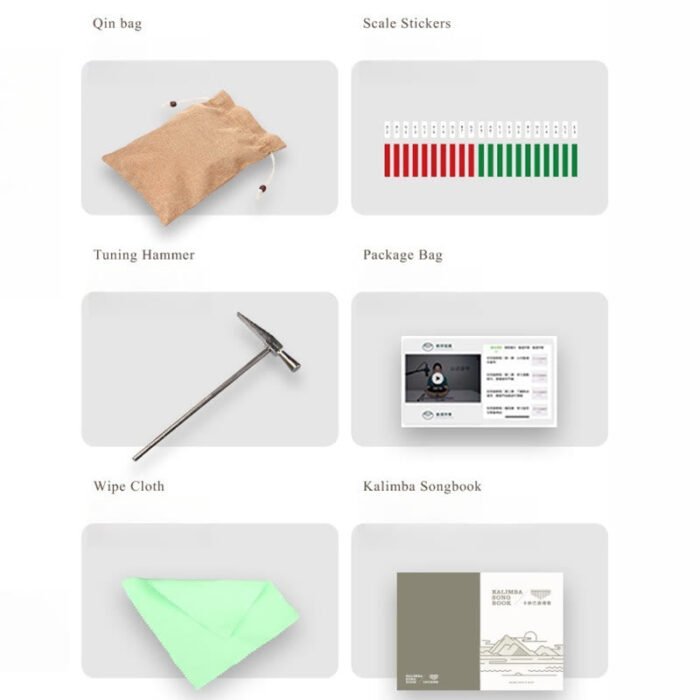 - Package Included: Kalimba*1, Kalimba Songbook*1, Tuning Hammer*1, Note Sticker*1, Cleaning Cloth*1, Storage Bag*1