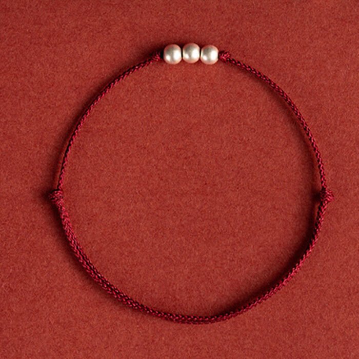 925 Sterling Silver Three Beads Protection String Bracelet Anklet
